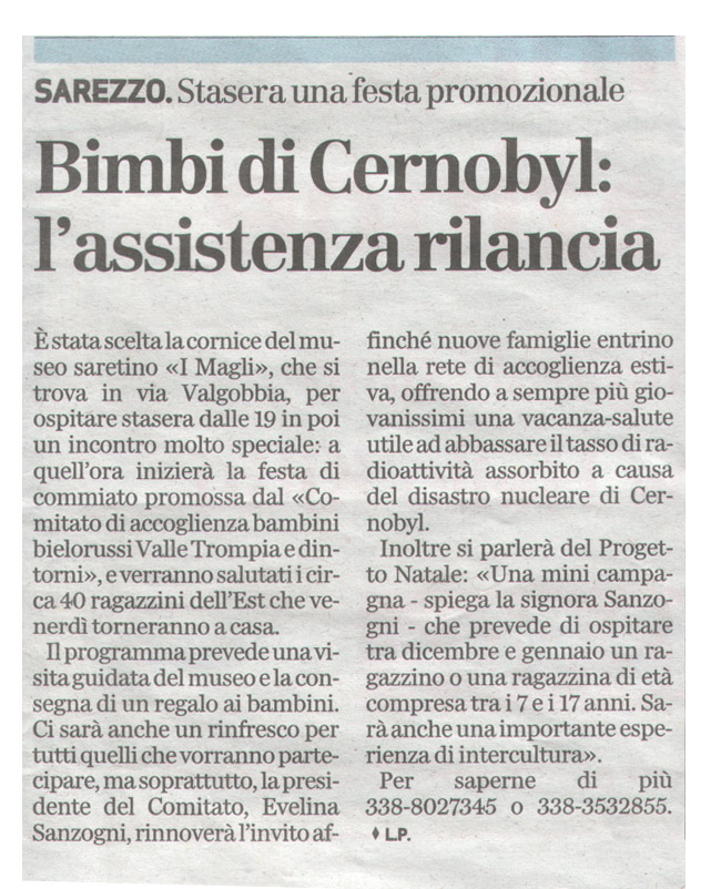 Bimbi di Cernobyl: l'assistenza rilancia