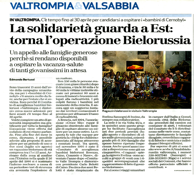 Articolo tratto dal BRESCIAOGGI di Marted́ 20 Aprile 2010