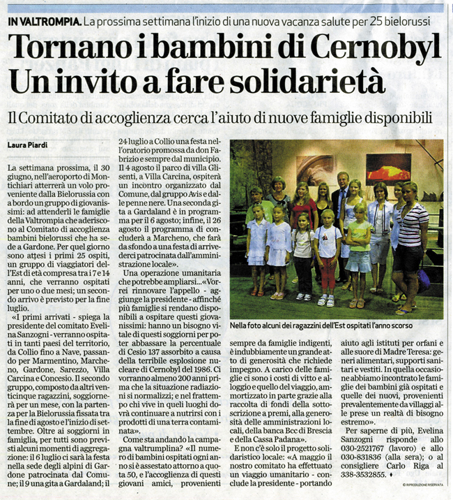 Articolo tratto dal BRESCIAOGGI del 25 giugno 2010