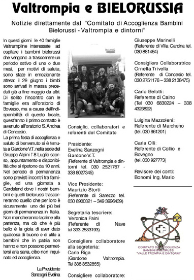 Notizie direttamente dal "Comitato di Accoglienza Bambini Bielorussi - Valtrompia e dintorni"