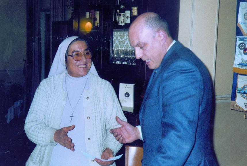 Suor Maria Grazia Lepore attorniata da ragazze adottate a distanza