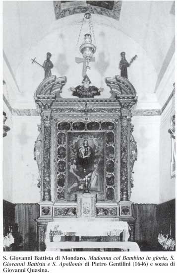 In questa chiesa dell'antica "Terra di Mondaro", sussidiaria della Parrocchiale intitolata a Sant'Apollonio, è custodita la pala d'altare eseguita da Andrea Piardi.