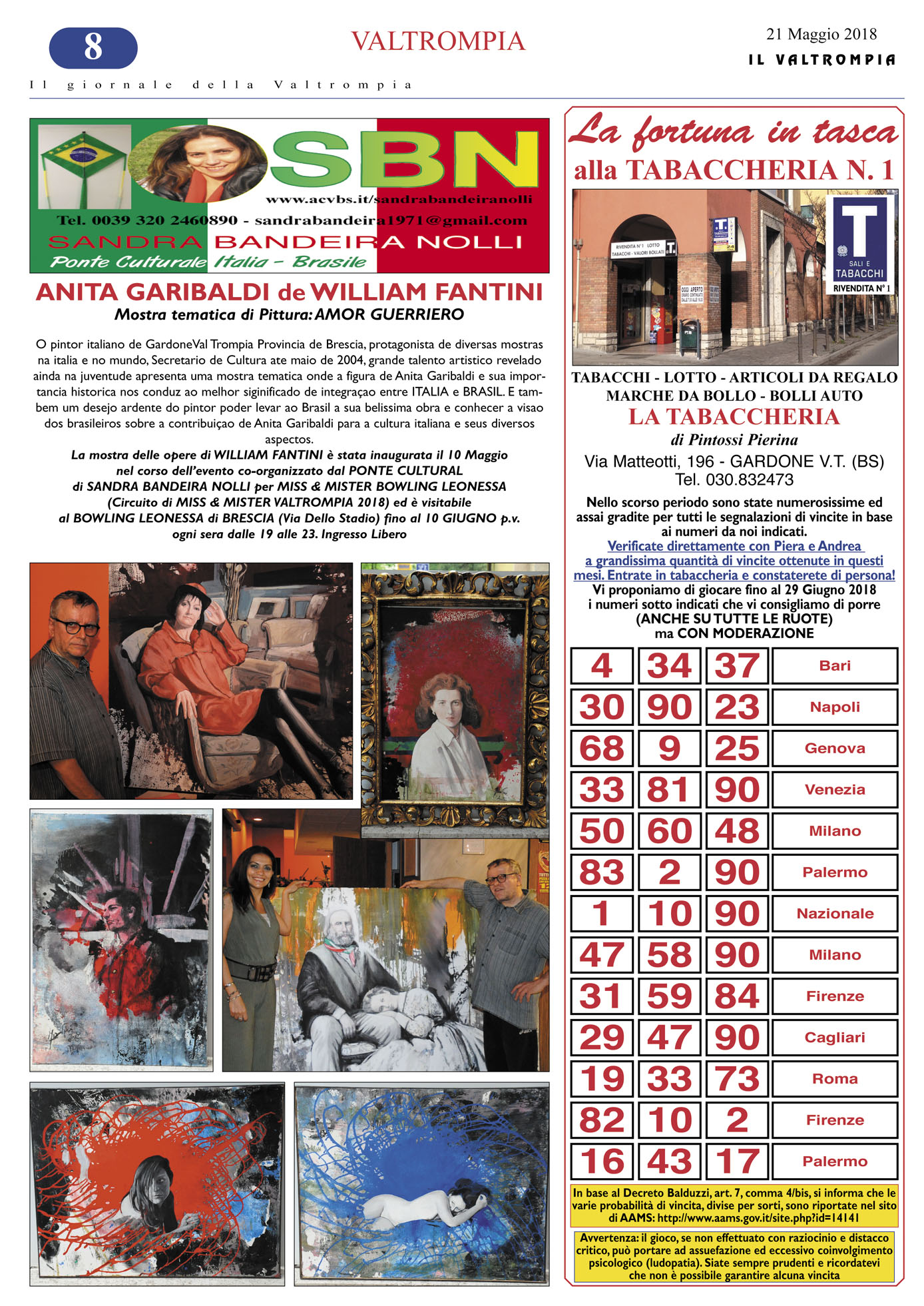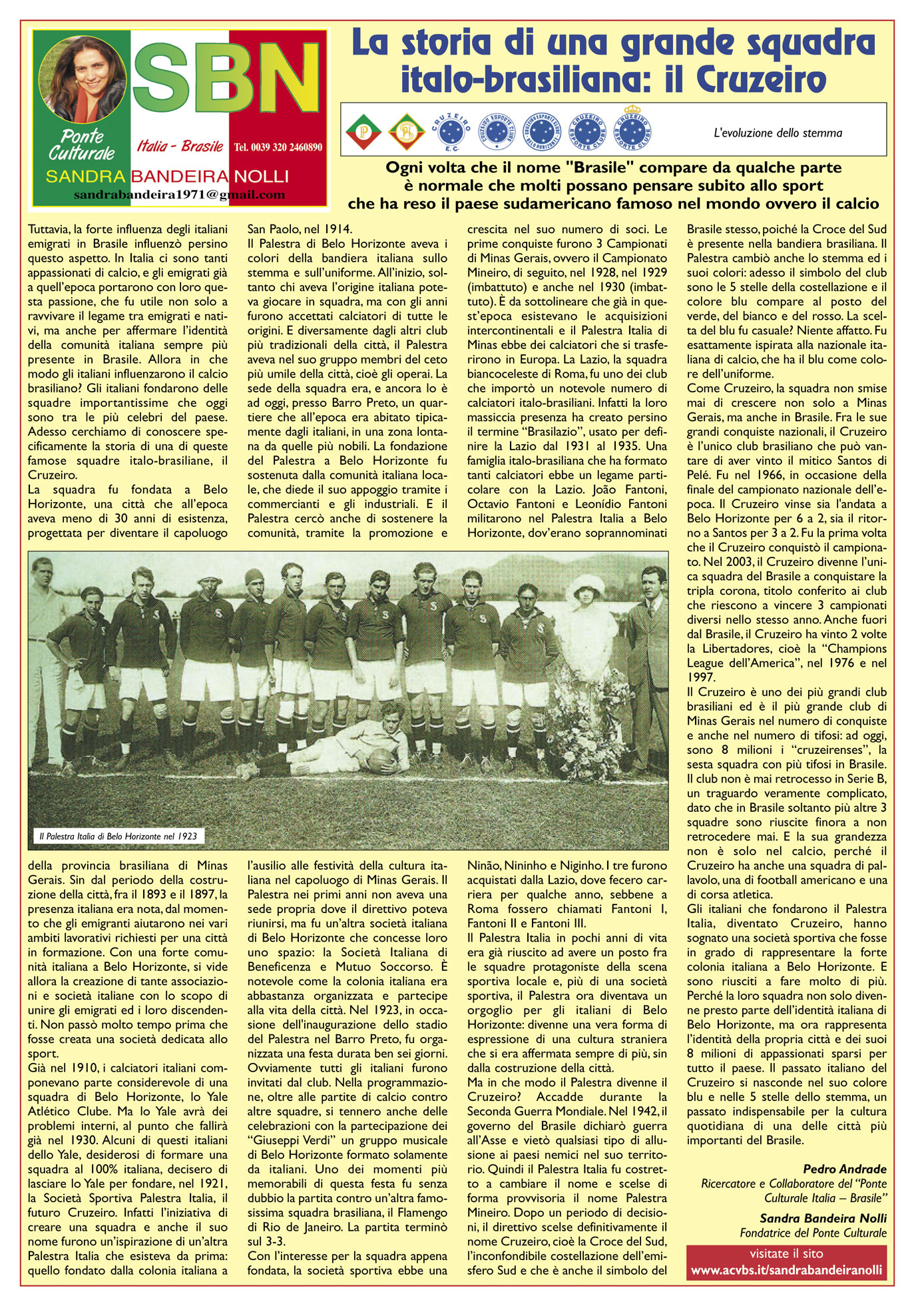 "PONTE CULTURALE ITALIA - BRASILE" DI SANDRA BANDEIRA NOLLI IN ONDA SU PIUVALLITV SABATO 4 MAGGIO ORE 13.10 DOMENICA 5 MAGGIO ORE 11 TRASMISSIONE ACVPG DI GASPARINI PIETRO ANGELO